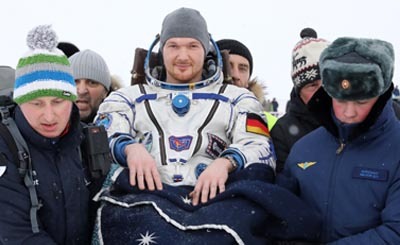 После более чем полугода пребывания на Международной космической станции МКС немецкий астронавт Александер Герст (Alexander Gerst) снова вернулся на Землю. Он приземлился в капсуле „Союз“ в казахстанской степи.